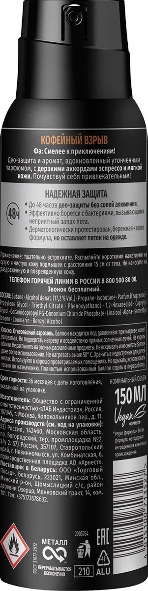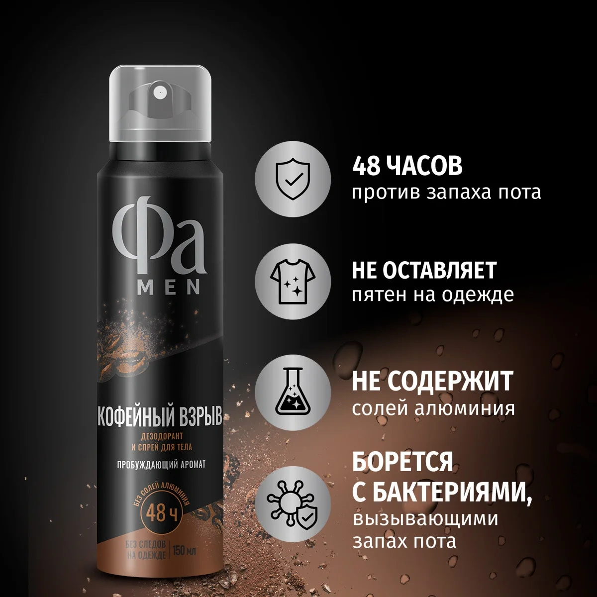 Дезодорант Фа Men Кофейный взрыв аэрозольный, 150мл