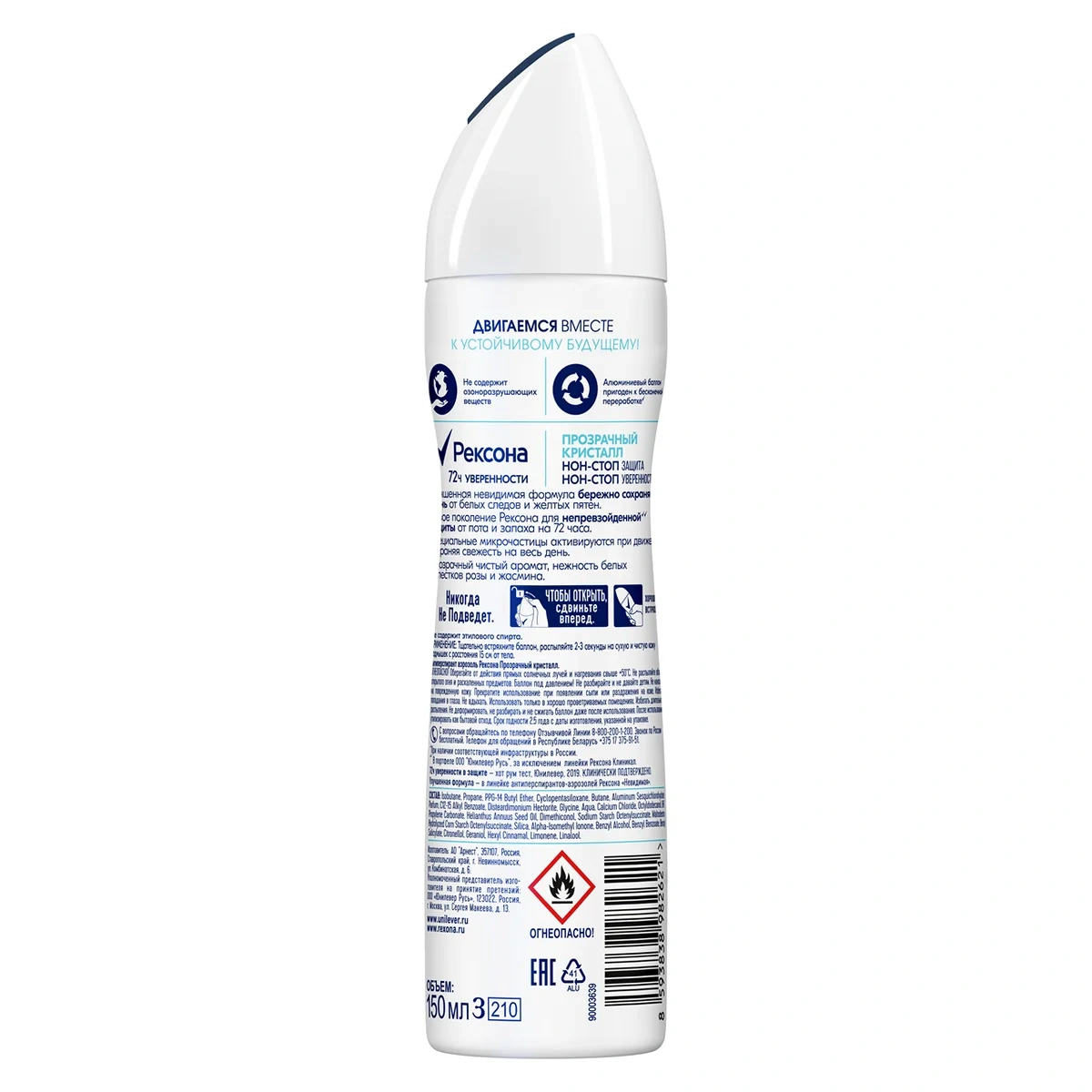 Антиперспирант Рексона Невидимая прозрачный кристалл спрей, 150мл