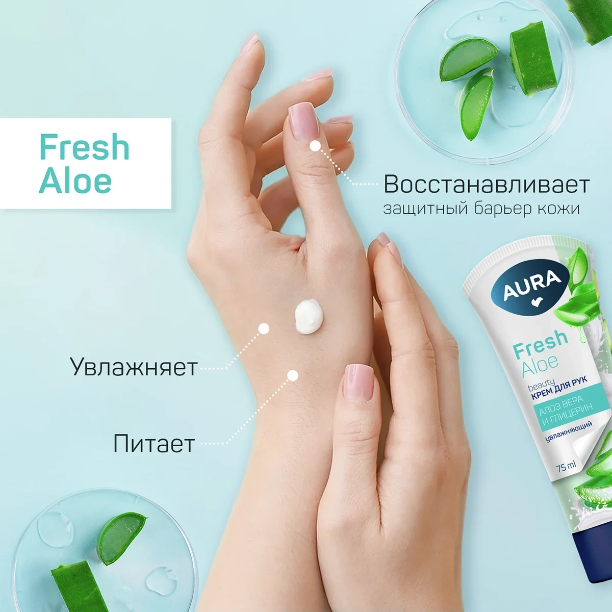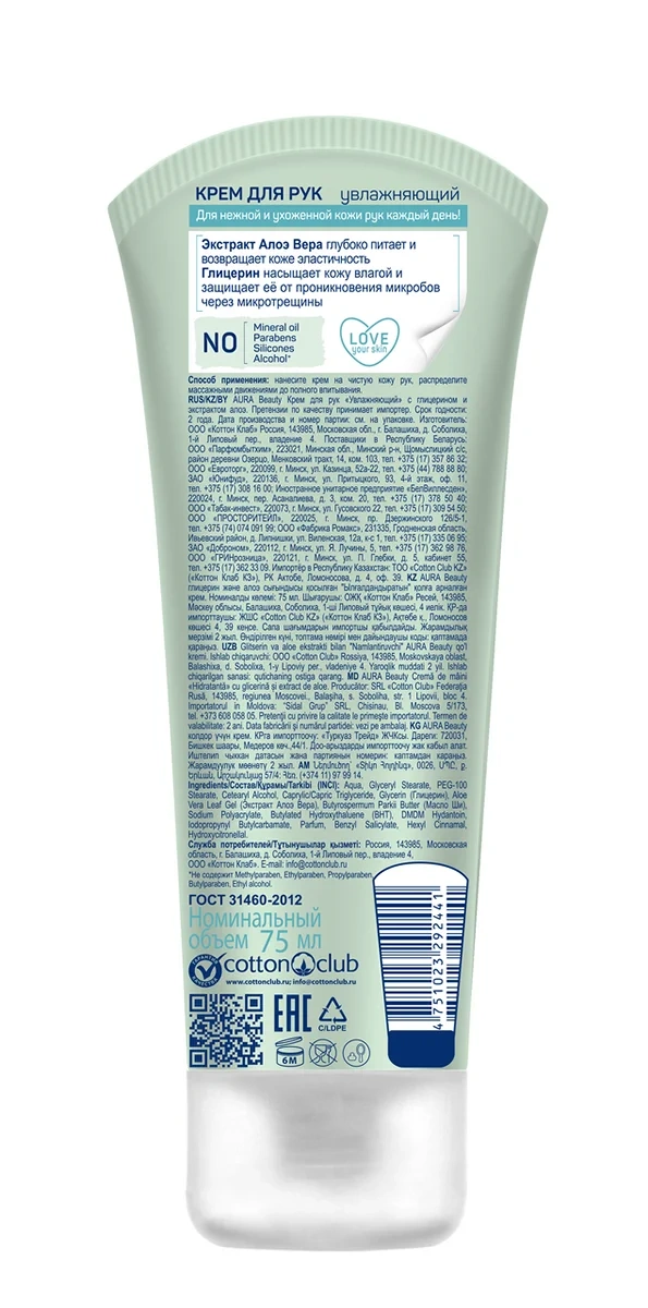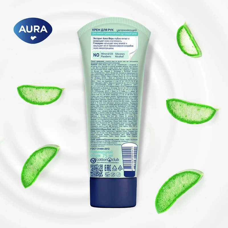 Крем для рук Aura Beauty увлажняющий алоэ вера-глицерин, 75мл