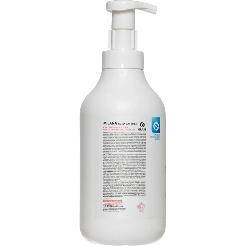 Пенка для душа Grass Milana 750мл, экстракт хлопка-молочные протеины, 125466