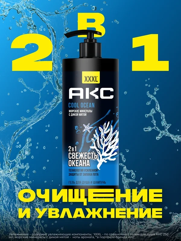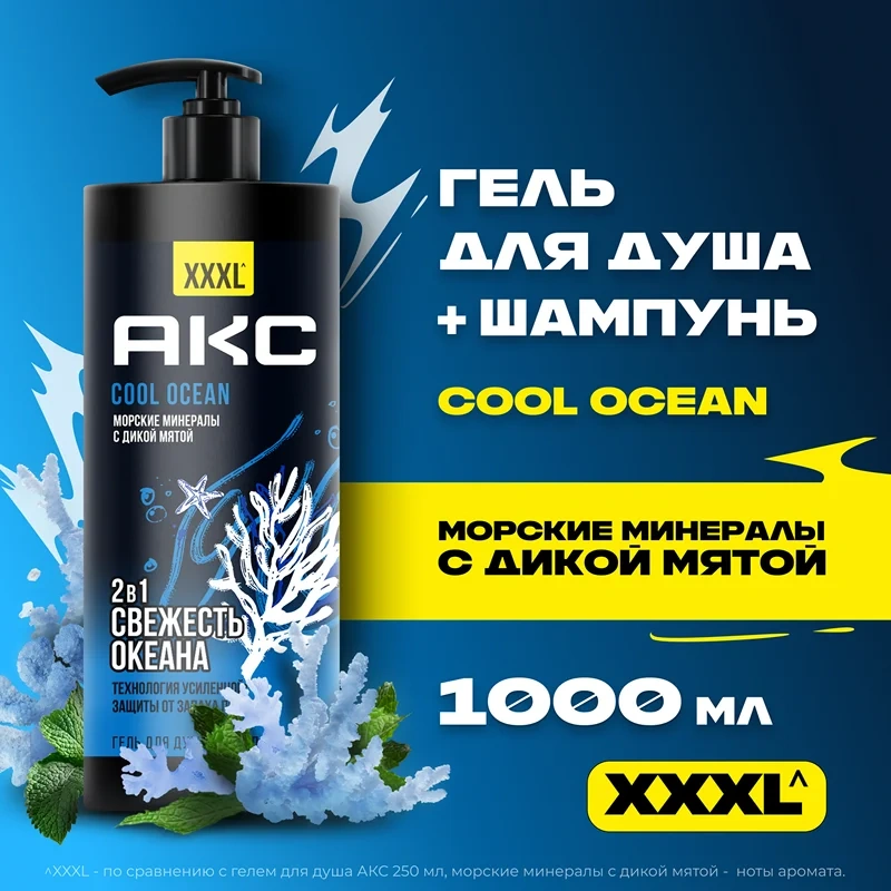Гель для душа Акс Cool Ocean 2в1, 1л