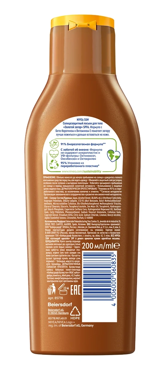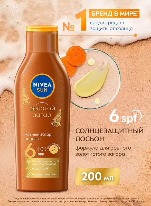 Лосьон для тела Nivea солнцезащитный Золотой загар SPF6, 200мл
