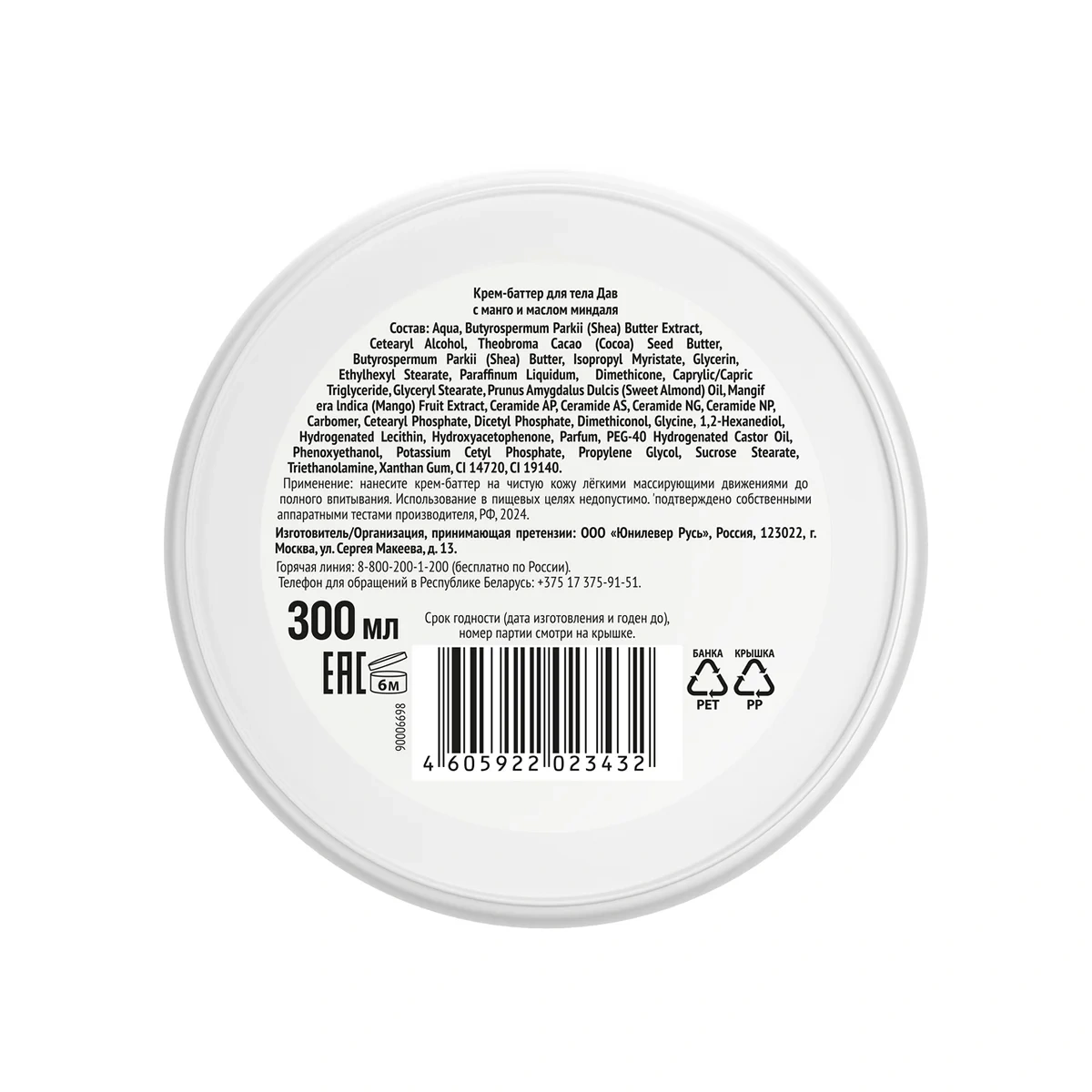 Крем-баттер для тела Дав с манго и маслом миндаля, 300мл