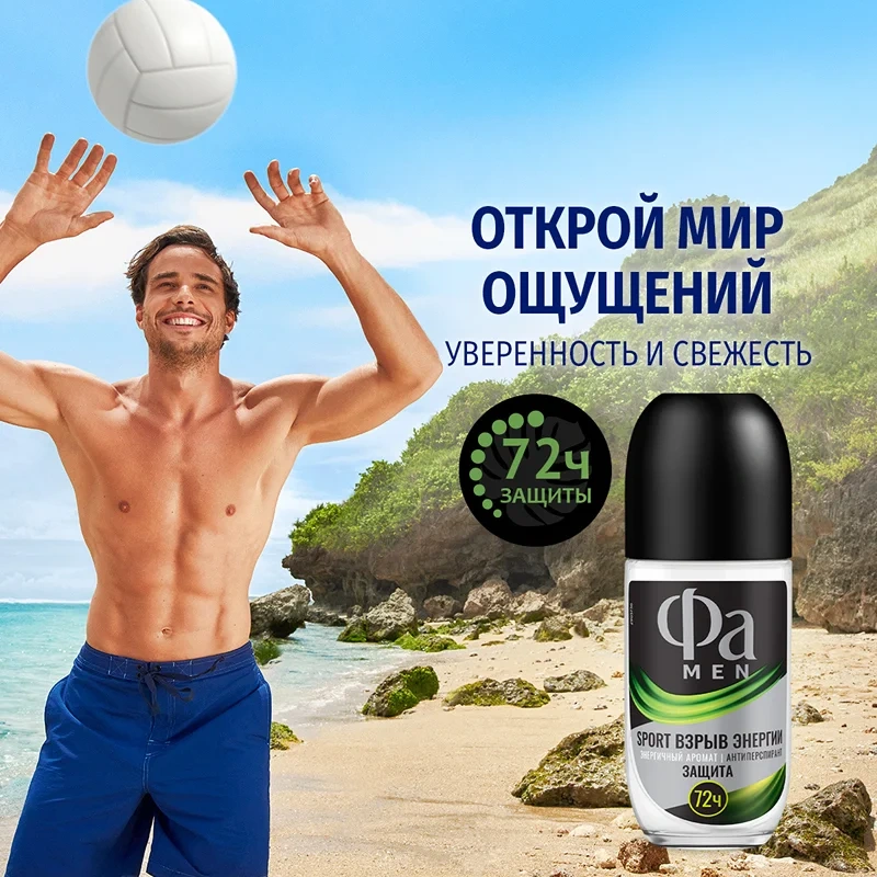 Дезодорант-антиперспирант Фа Men Sport Взрыв энергии роликовый, 50мл