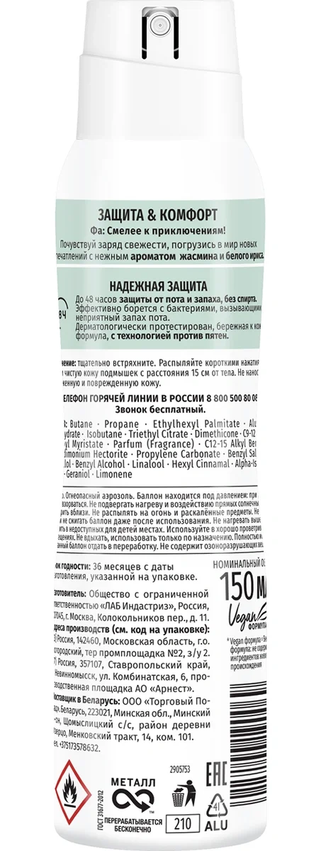 Дезодорант-антиперспирант Фа Прозрачная защита аэрозольный, 150мл