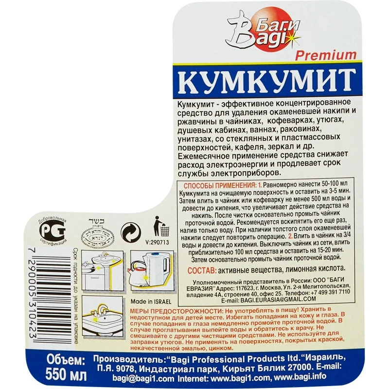 Средство для удаления накипи Bagi 'Кумкумит', с пластика и металла, жидкость, 550мл