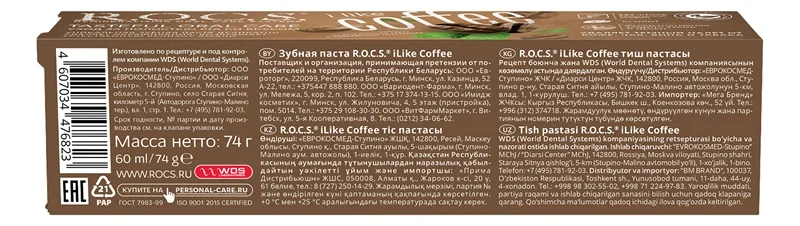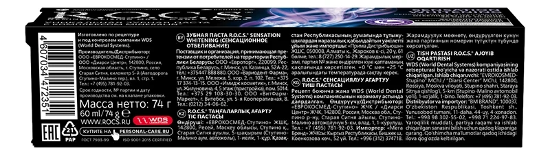 Зубная паста R.O.C.S. Сенсационное отбеливание, 74г