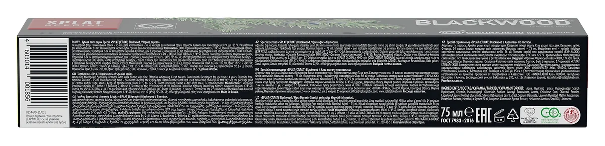 Зубная паста Splat Special Blackwood отбеливающая, 75мл