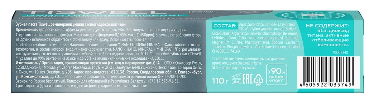 Зубная паста Tiswell Nano Mineral пломба, 110г