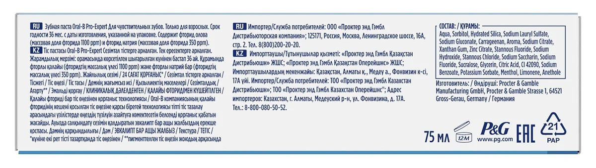Зубная паста Oral-B Pro-Expert для чувствительных зубов, 75мл