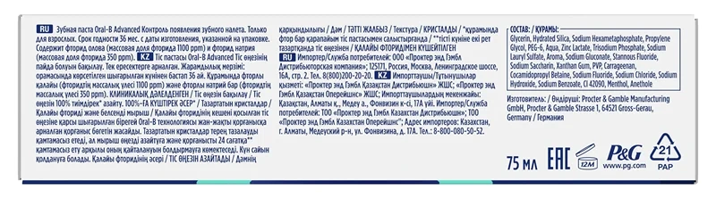 Зубная паста Oral-B Advanced контроль зубного налета, 75мл