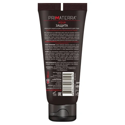 Крем защитный 100 мл, PRIMATERRA AQUA, гидрофобный для кожи, от кислотных и щелочных средств
