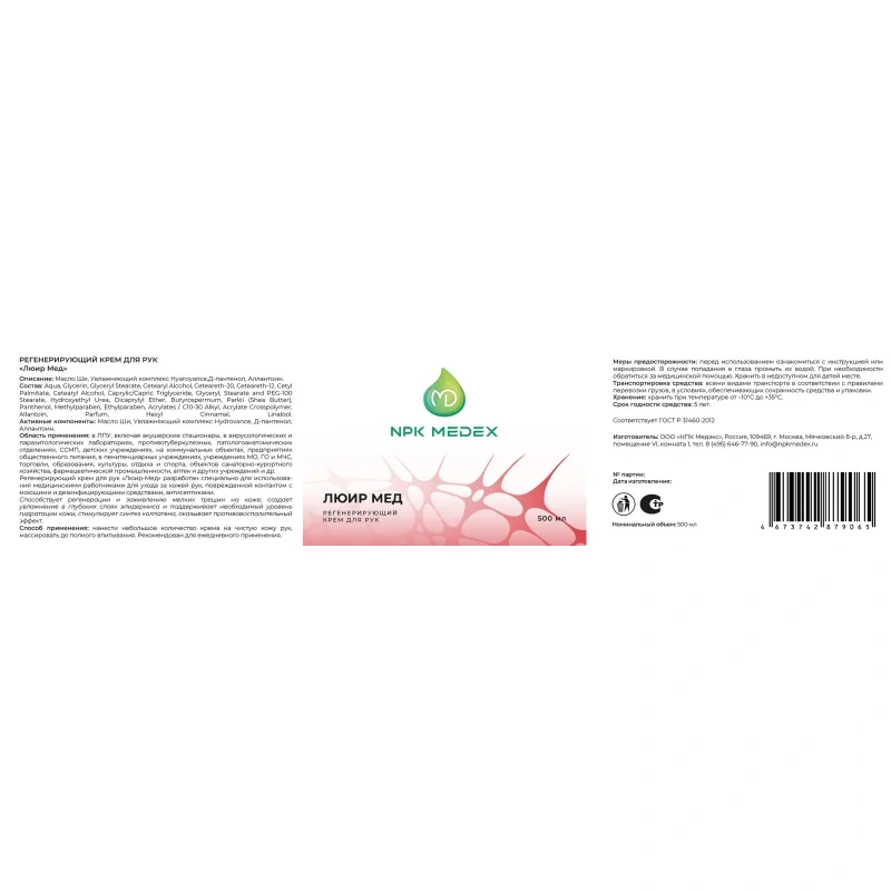 Крем регенерирующий для рук Люир Мед 500мл, с дозатором