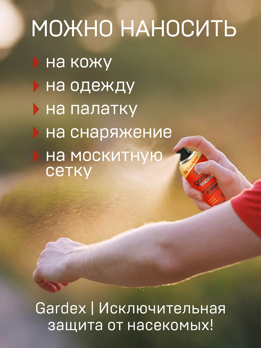 GARDEX Аэрозоль-репеллент от всех летающих, кровососущих насекомых и клещей Extreme 150мл – это эффе...