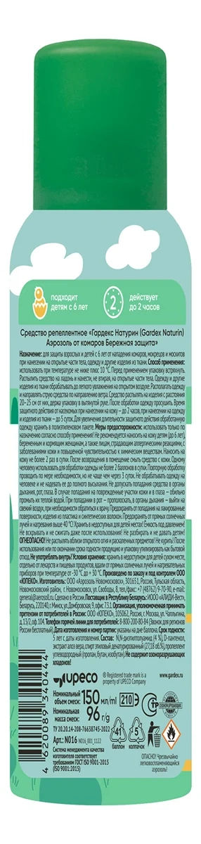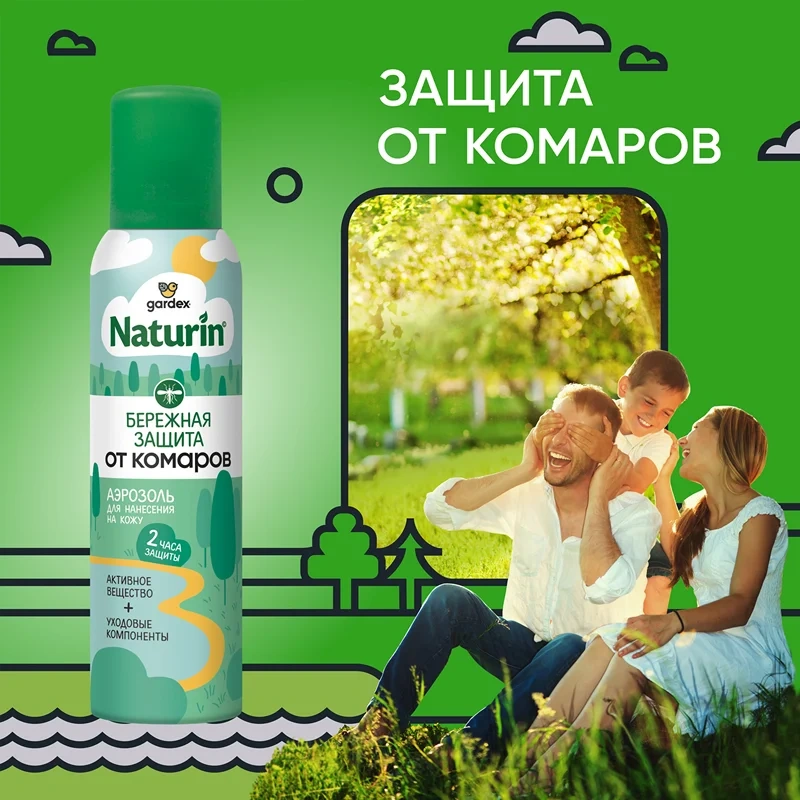 Аэрозоль от комаров Gardex Naturin Бережная защита, 150мл