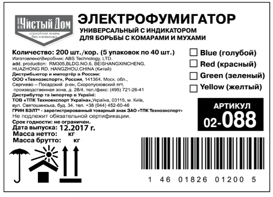 Для пластин и ликвидов с индикатором и поворотной вилкой. Цвета: синий, желтый, красный, зеленый. Лу...