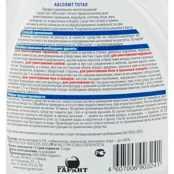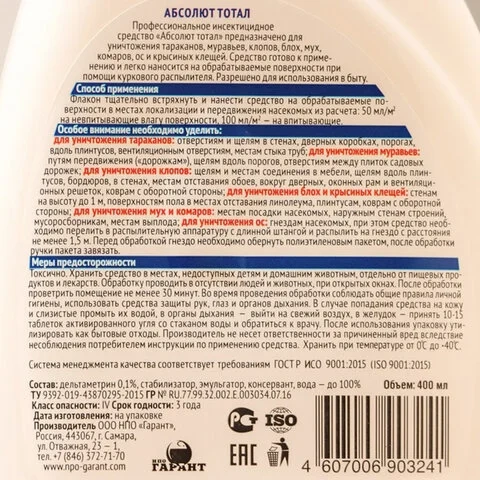 Профессиональное инсектицидное средство Абсолют Тотал От летающих и ползающих насекомых спрей 400 мл...