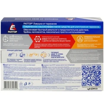 Ловушка для тараканов Раптор (6 штук в упаковке)Назначение: Ловушка Раптор предназначена д...
