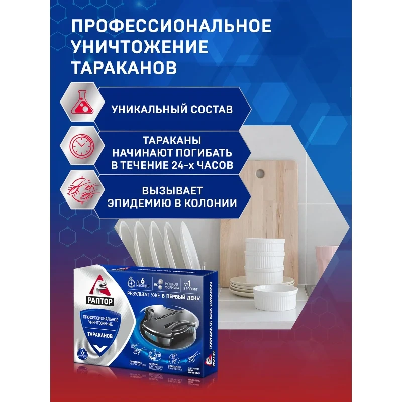 Ловушка от тараканов Раптор Профессиональное уничтожение 6 месяцев, 6шт
