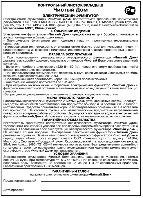 Состав: d-тетраметрин (0,05%), тетраметрин (0,15%), циперметрин (0,20%), пиперонилбутоксид (0,5%); <...