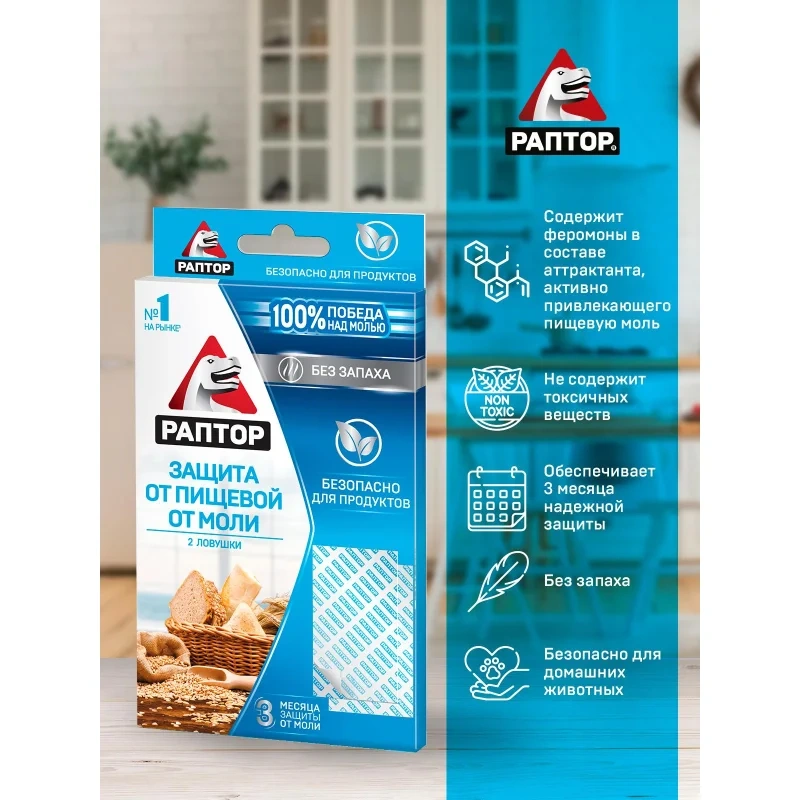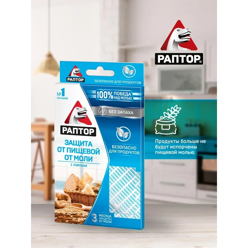 Ловушка от пищевой моли Раптор 3 месяца эффективной защиты, без запаха, 2шт