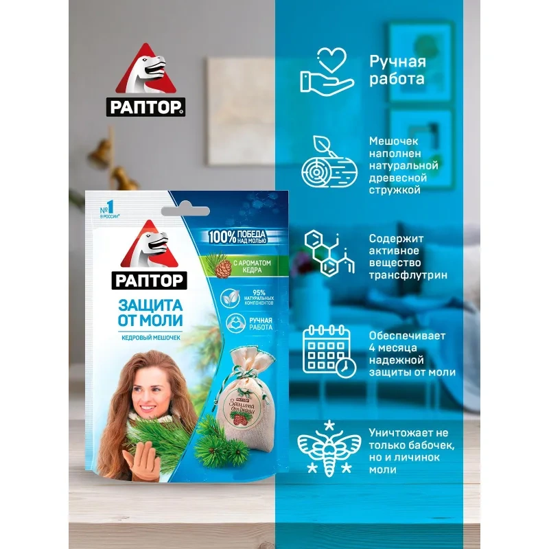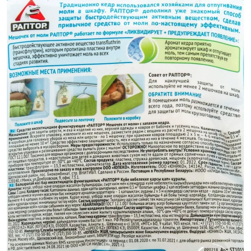 Средство от насекомых РАПТОР Мешочек от моли с запахом кедра 1шт 20гр