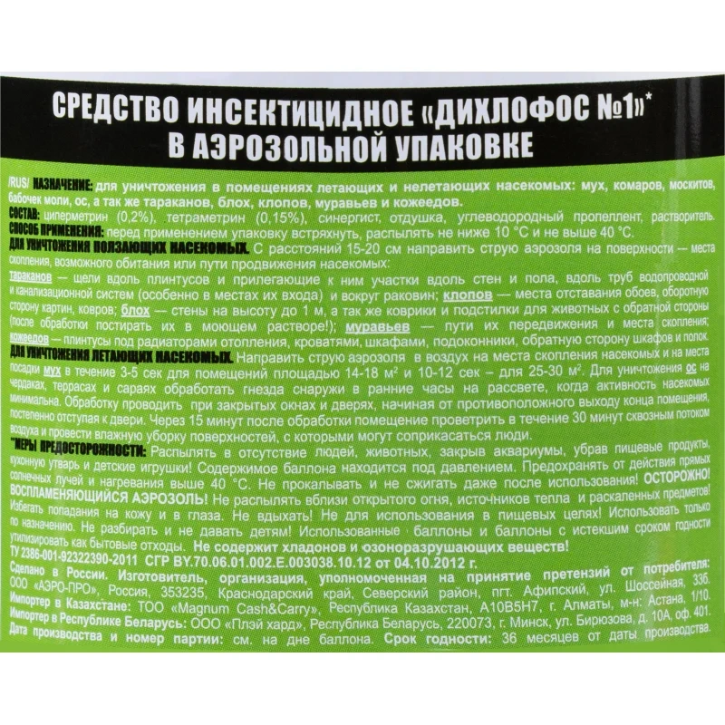 Средство от насекомых Средство от насекомых Дихлофос №1 140 мл