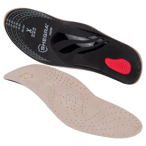 Стельки для обуви из натуральной кожи c СУПИНАТОРОМ, размер RU 39-45 / EU 40-46, с линиями выреза, S