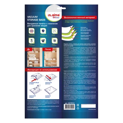 Вакуумный пакет с клапаном для хранения вещей 50х60 см, КОМПЛЕКТ 3 шт., LAIMA HOME, 607783