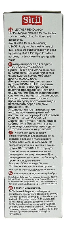 Краска-восстановитель для кожи и нубука Sitil жидкая, 100мл