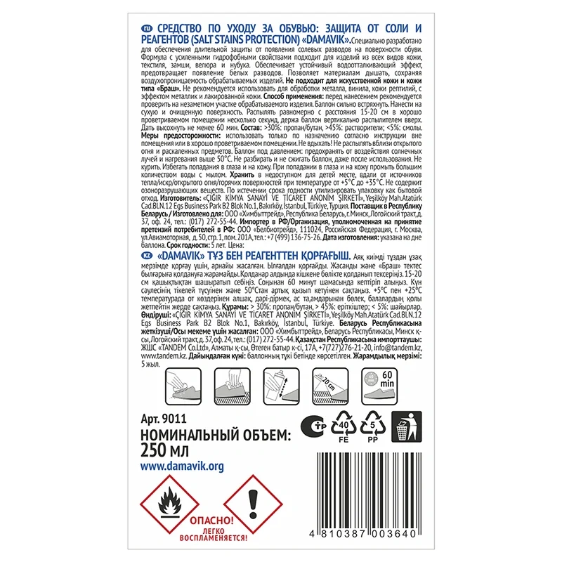 Средство для обуви Damavik Защита от соли и реагентов, 250мл
