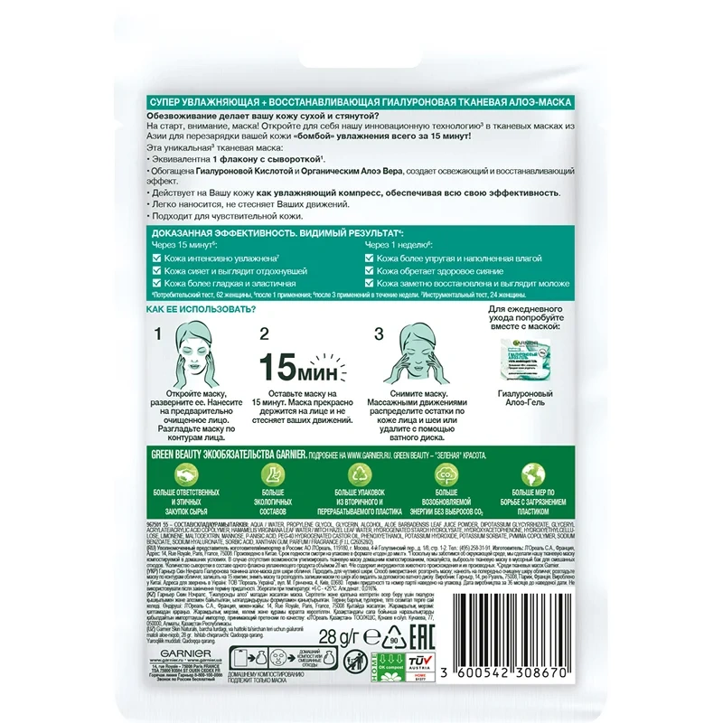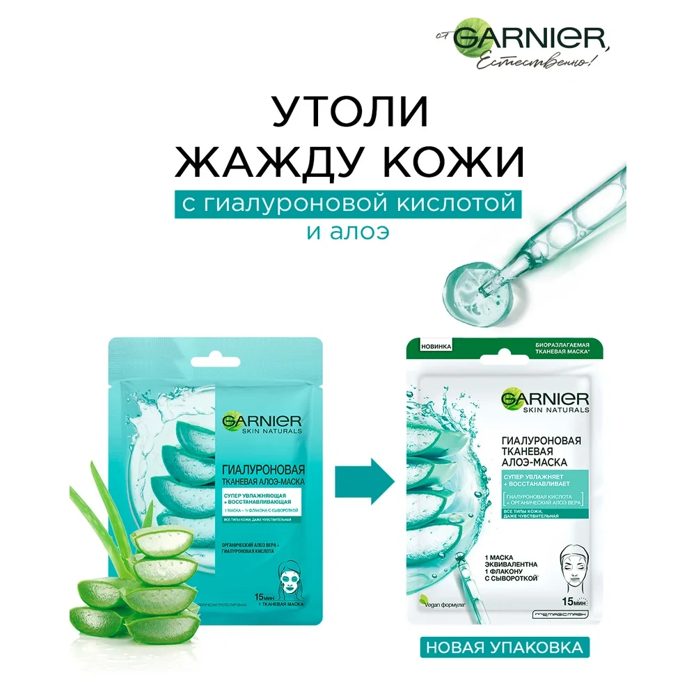 Маска для лица Garnier Skin Naturals Гиалуроновая тканевая, 33г