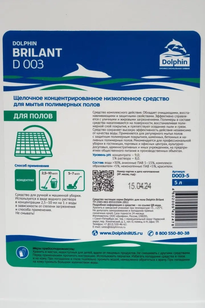 Моющее средство Dolphin Brilant 5л, для полов с полимерным покрытием, D003