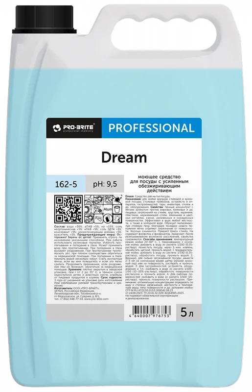 Средство для мытья посуды Pro-Brite Dream 5л, 162-5