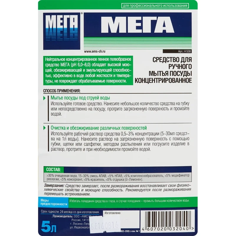 Моющий концентрат для посуды Мега 5л, для ручного мытья, H 530