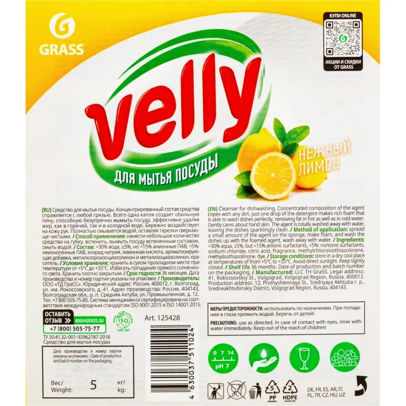 Grass: Велли 5кг для посуды Лимон ПЭТ (шт.) 125792