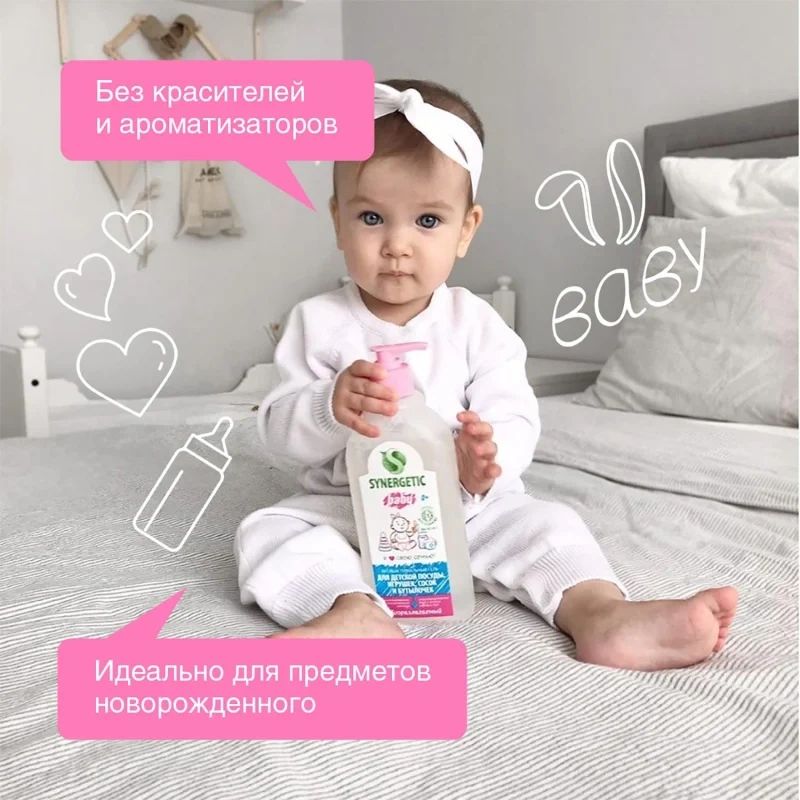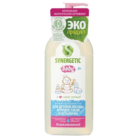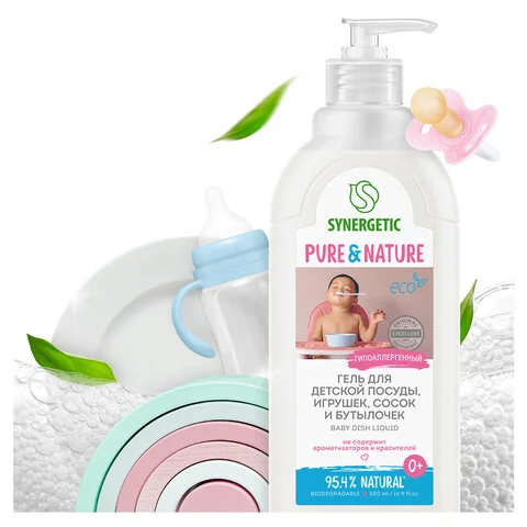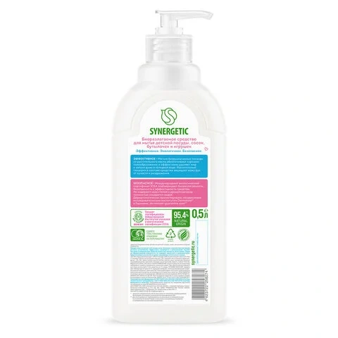 Средство для мытья посуды Synergetic для детской посуды, биоразлагаемый, дозатор, 500мл
