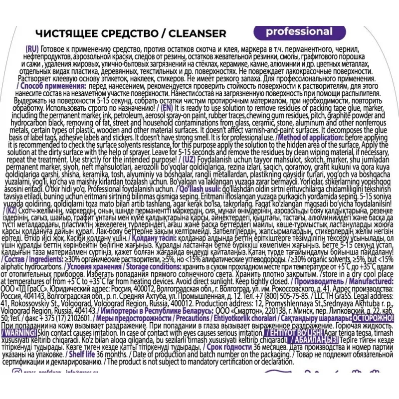 Чистящее средство Grass Antigraffiti 600мл, для удаления граффити, спрей, 125602