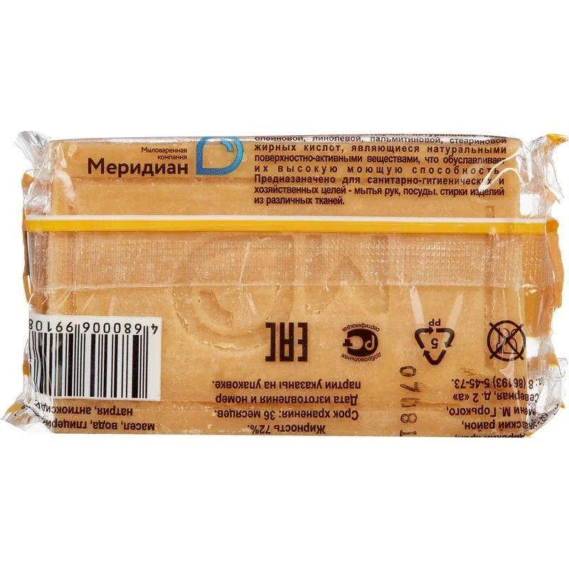 Мыло хозяйственное 72% Меридиан 'Традиционное', 200г, флоу-пак