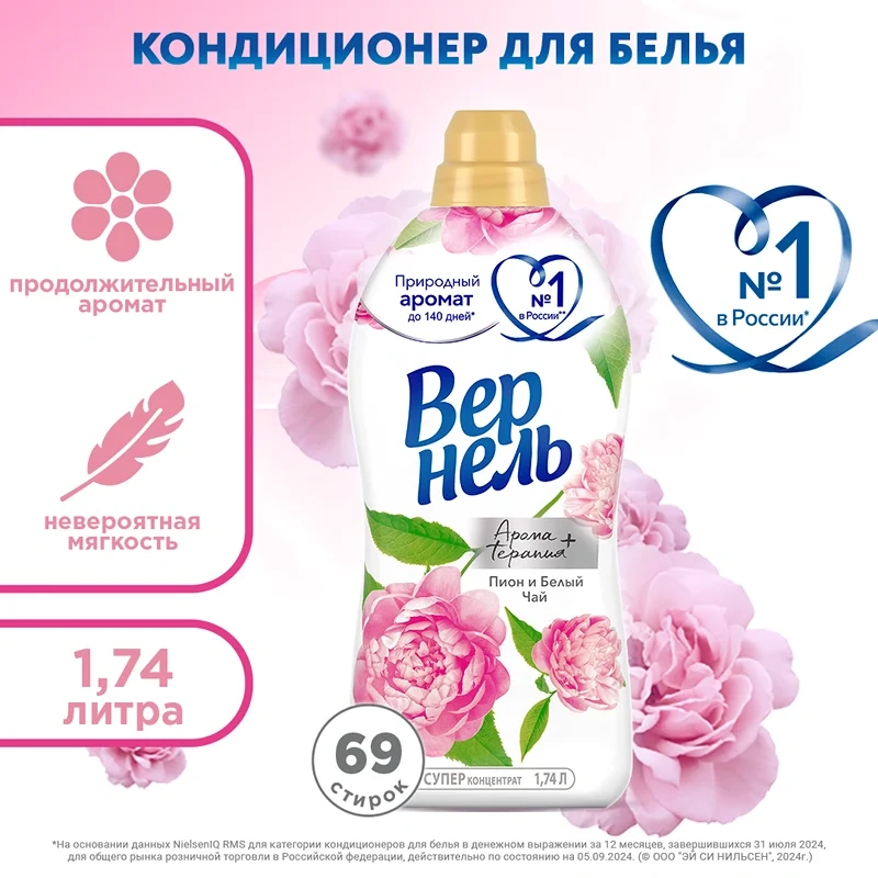 Кондиционер для белья Вернель 'Aroma. Пион и белый чай', концентрат, 1,74л