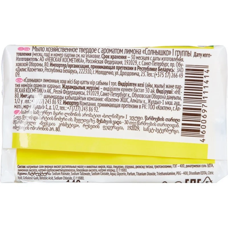 Мыло хозяйственное Солнышко, с ароматом лимона, 72%, 140г