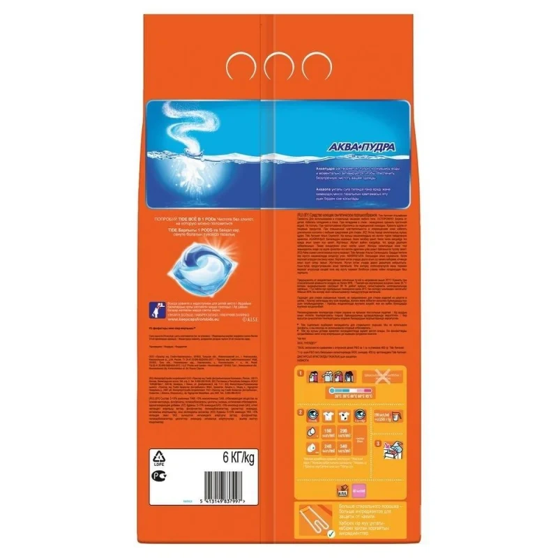 Стиральный порошок Tide Аква-Пудра 6кг, альпийская свежесть, автомат