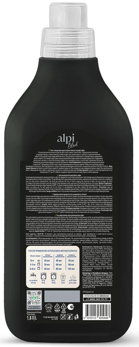 Гель-концентрат Grass Alpi для темных вещей, 1.8л