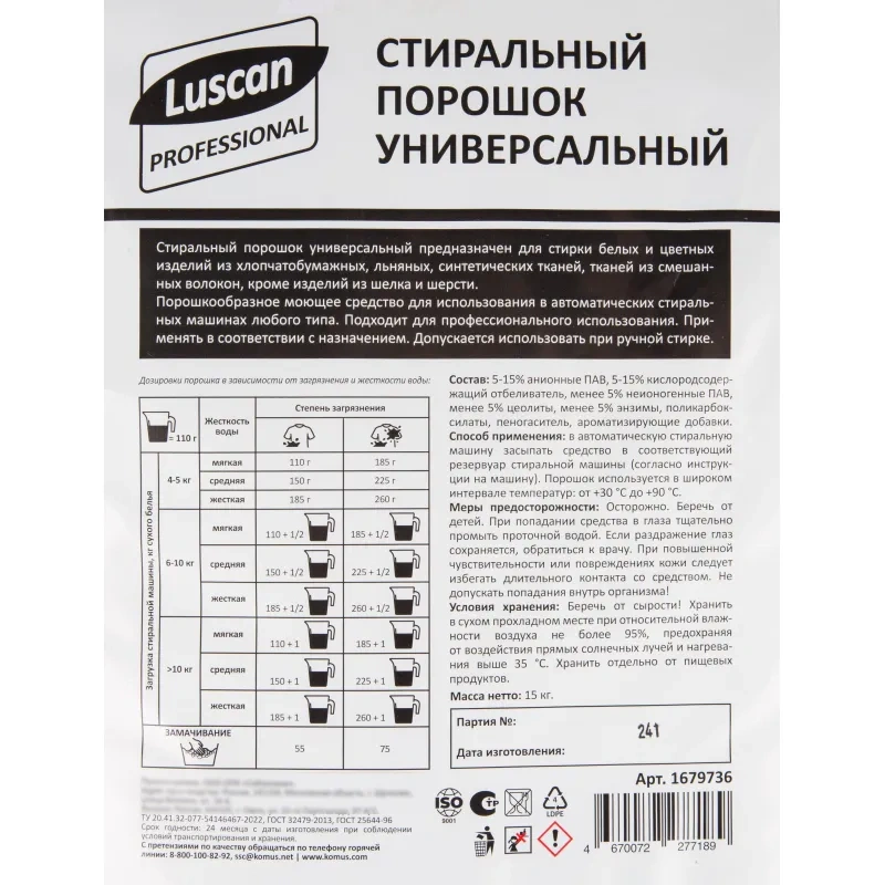Стиральный порошок Luscan Professional Автомат универсальный, 15кг