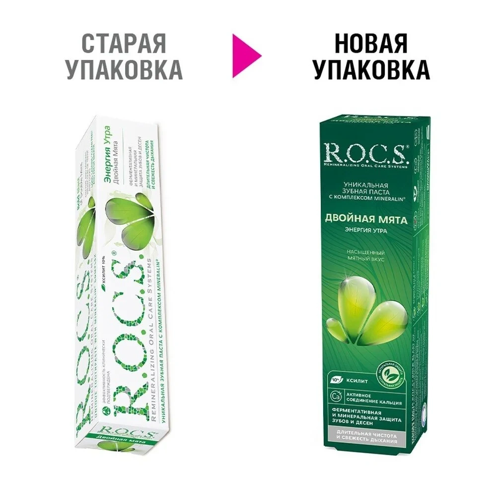 Зубная паста R.O.C.S. энергия утра, двойная мята, 74г