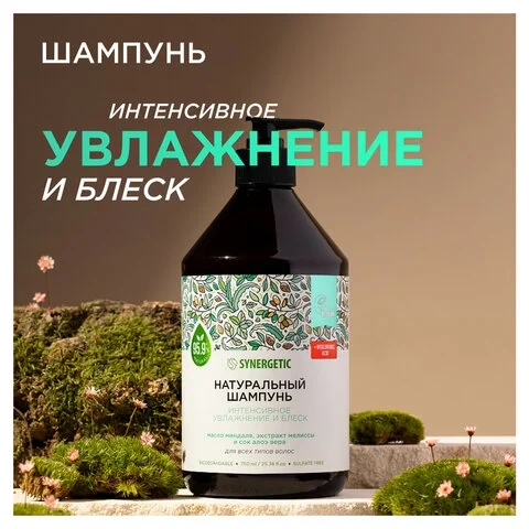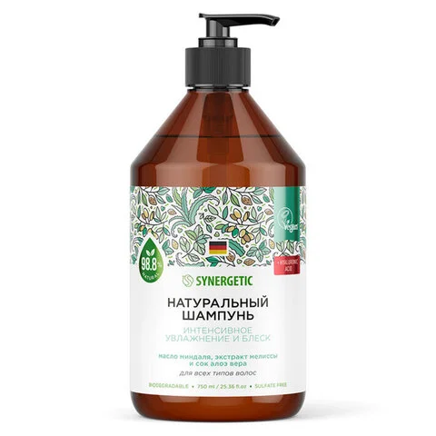 Шампунь Synergetic Интенсивное увлажнение и блеск, бессульфатный, 750мл