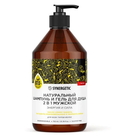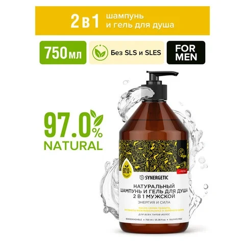Шампунь Synergetic Энергия и сила 2В1, гуль для душа, 750мл