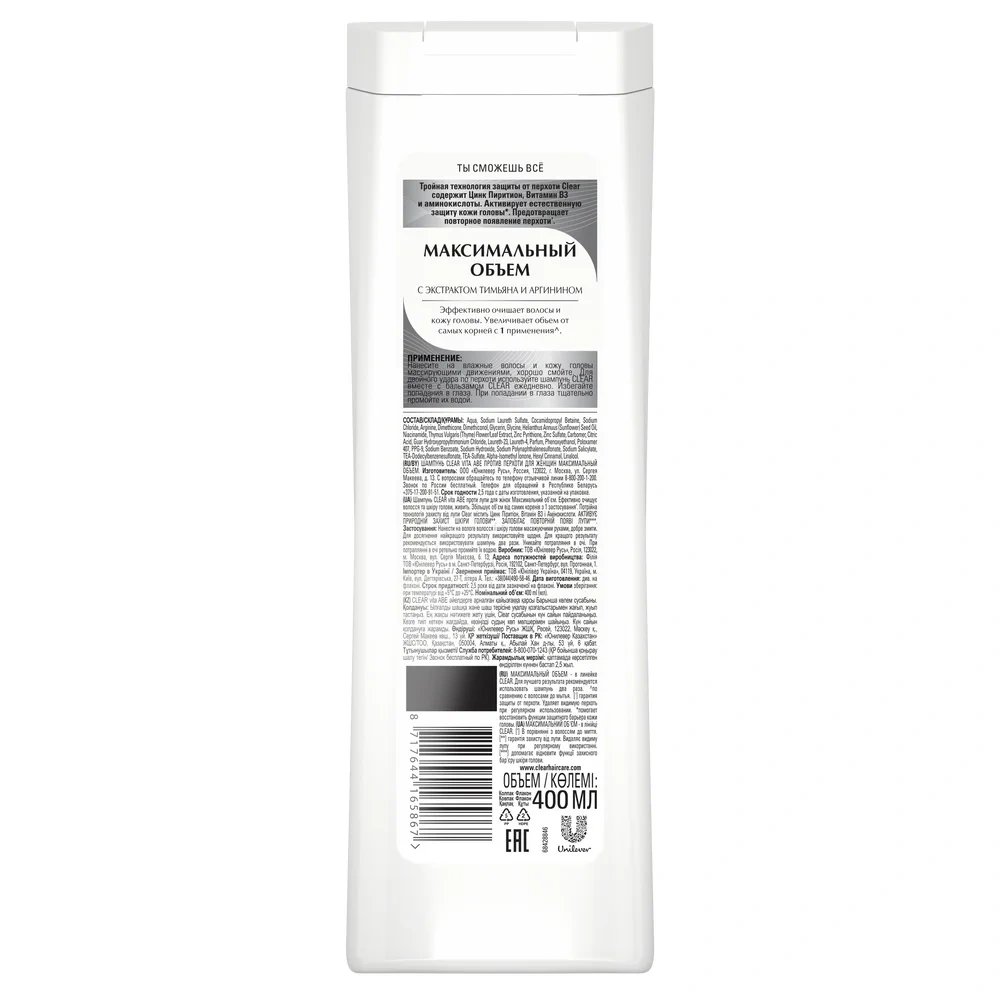 Шампунь Clear Vita Abe Максимальный объем, 400мл