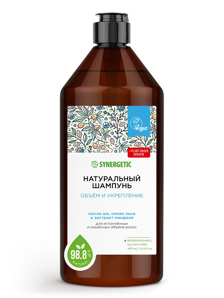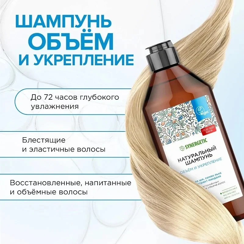 Шампунь Synergetic Объем и укрепление бессульфатный, 400мл