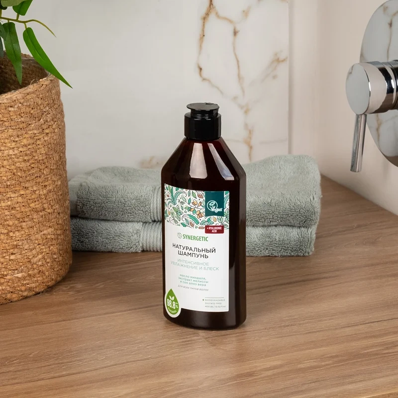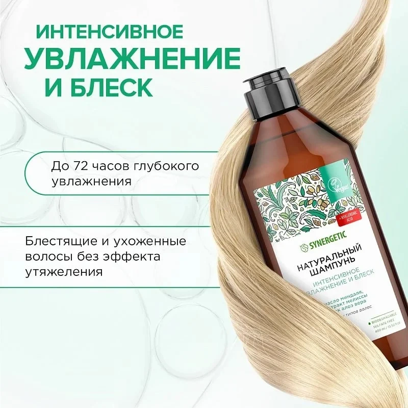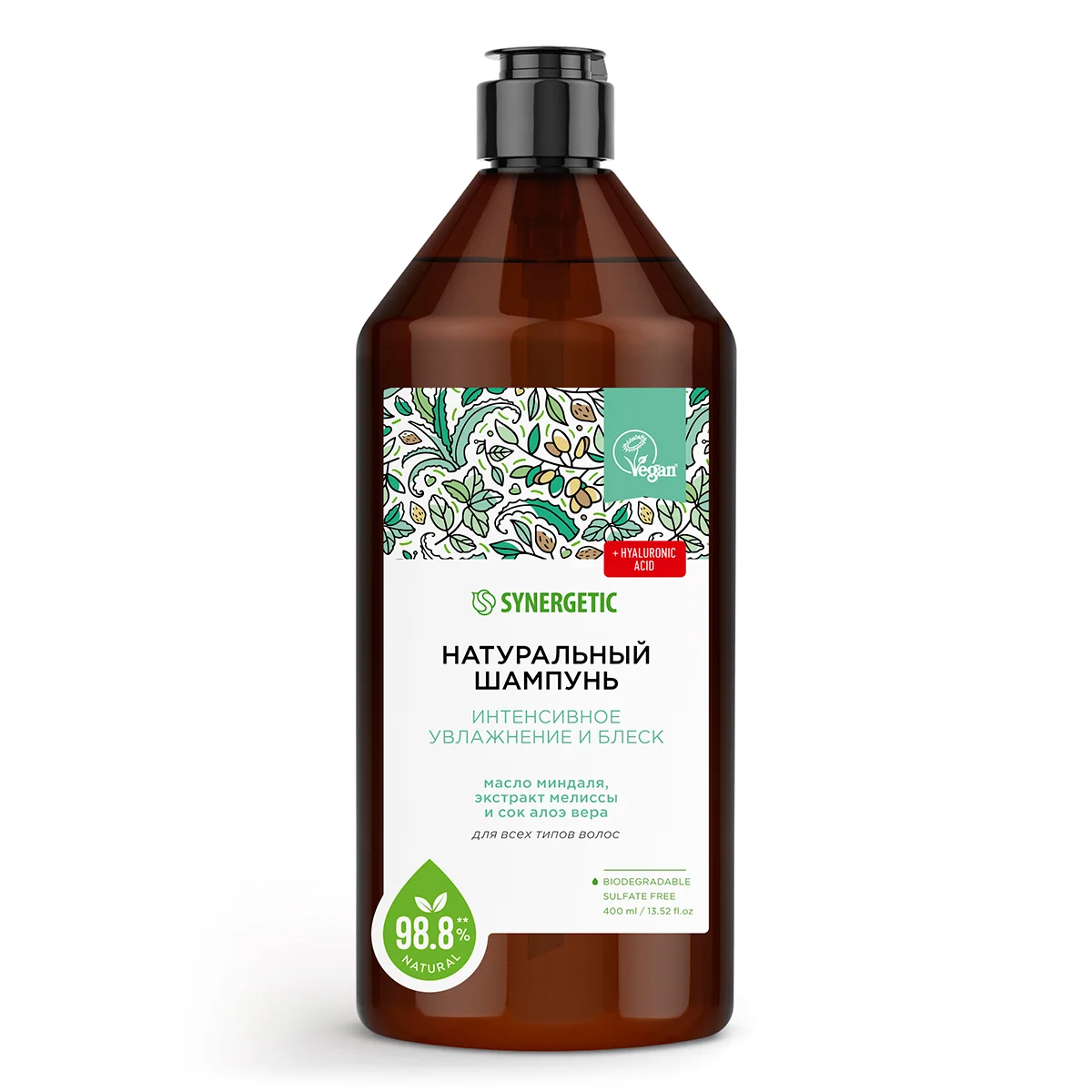 Шампунь Synergetic Интенсивное увлажнение и блеск бессульфатный, 400мл